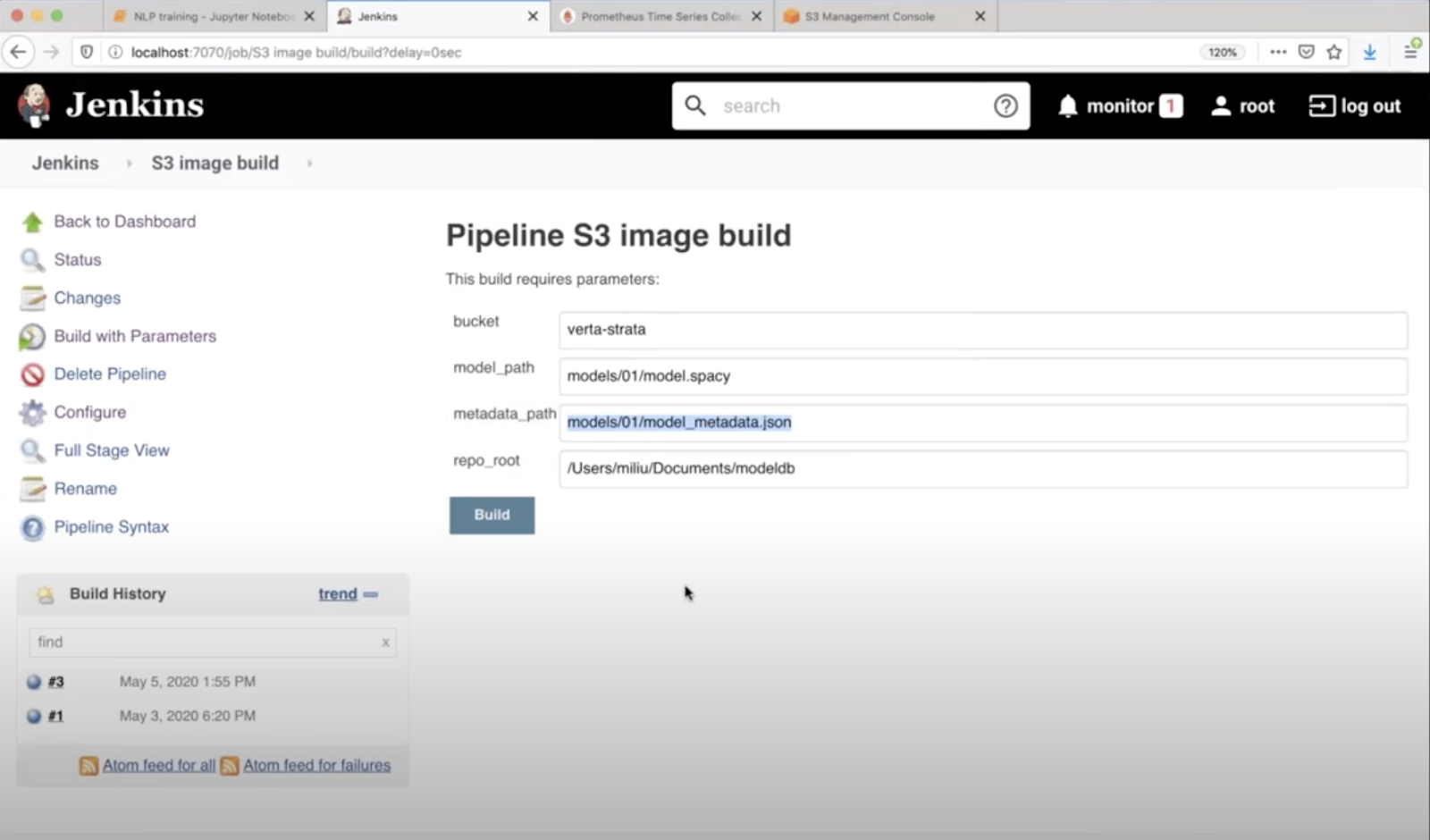 - In our Jenkins pipeline, instead of taking an S3 location, we take our commit SHA and build a model from it.